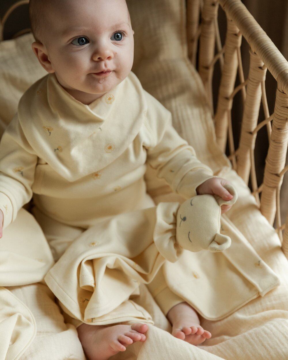 シルクのように柔らかいベビー ロンパースは、伸縮性に優れた幅広の折り畳み式の袖口で構成されており、コットン100%の生地にシルク仕上げを施し、柔らかさをプラス。