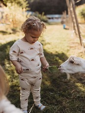 オーガニック繊維で柔らかい生地、安全で身体に優しい染料、そして子供達の未来を考えた持続可能なものづくりをする事を大切にしています。