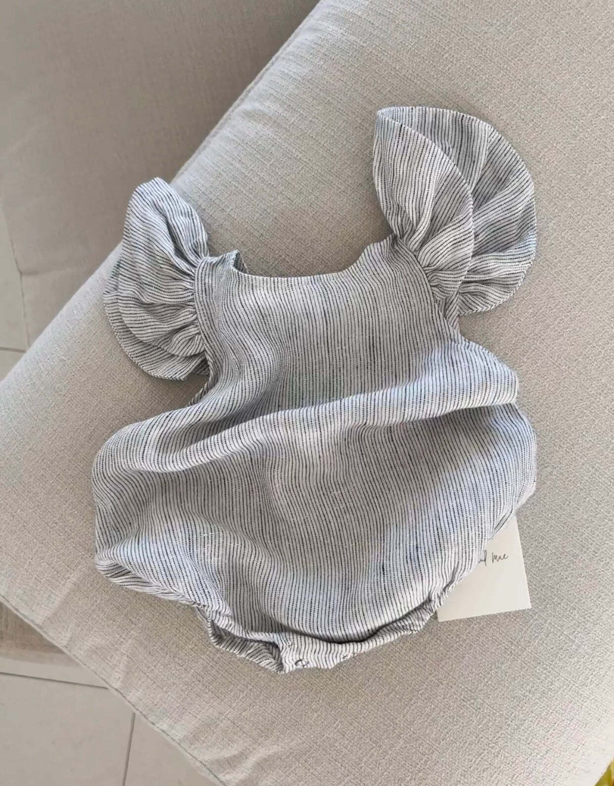 利用可能な生地は、リネン100%の先染めの細いストライプです。
