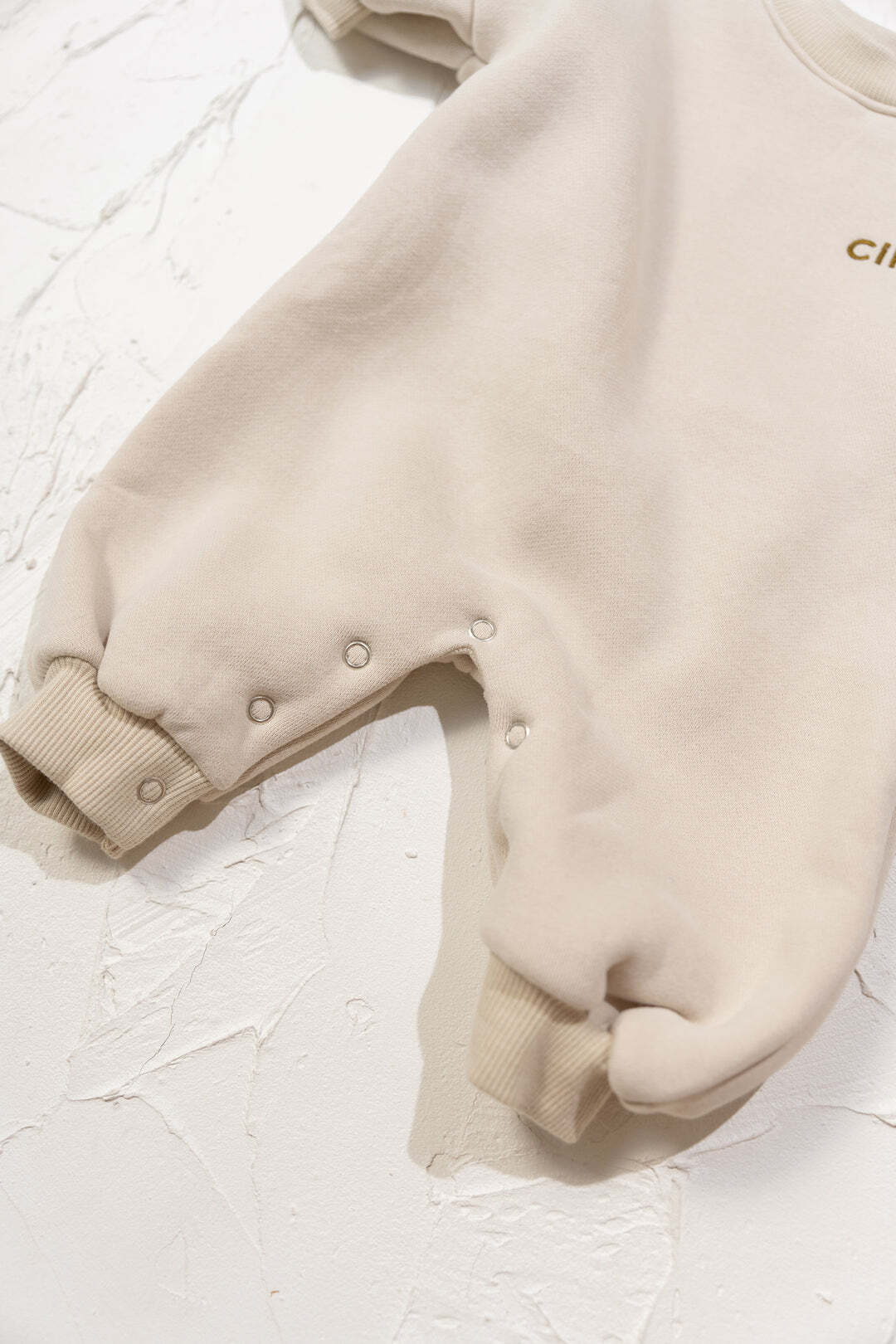 オーバーサイズのフィット感がトレンディなタッチを加え、スナップボタンの股間のディテールにより、移動中に素早く便利に着替えることができます。スタイルを損なうことなく、暖かさと利便性を実現します。
