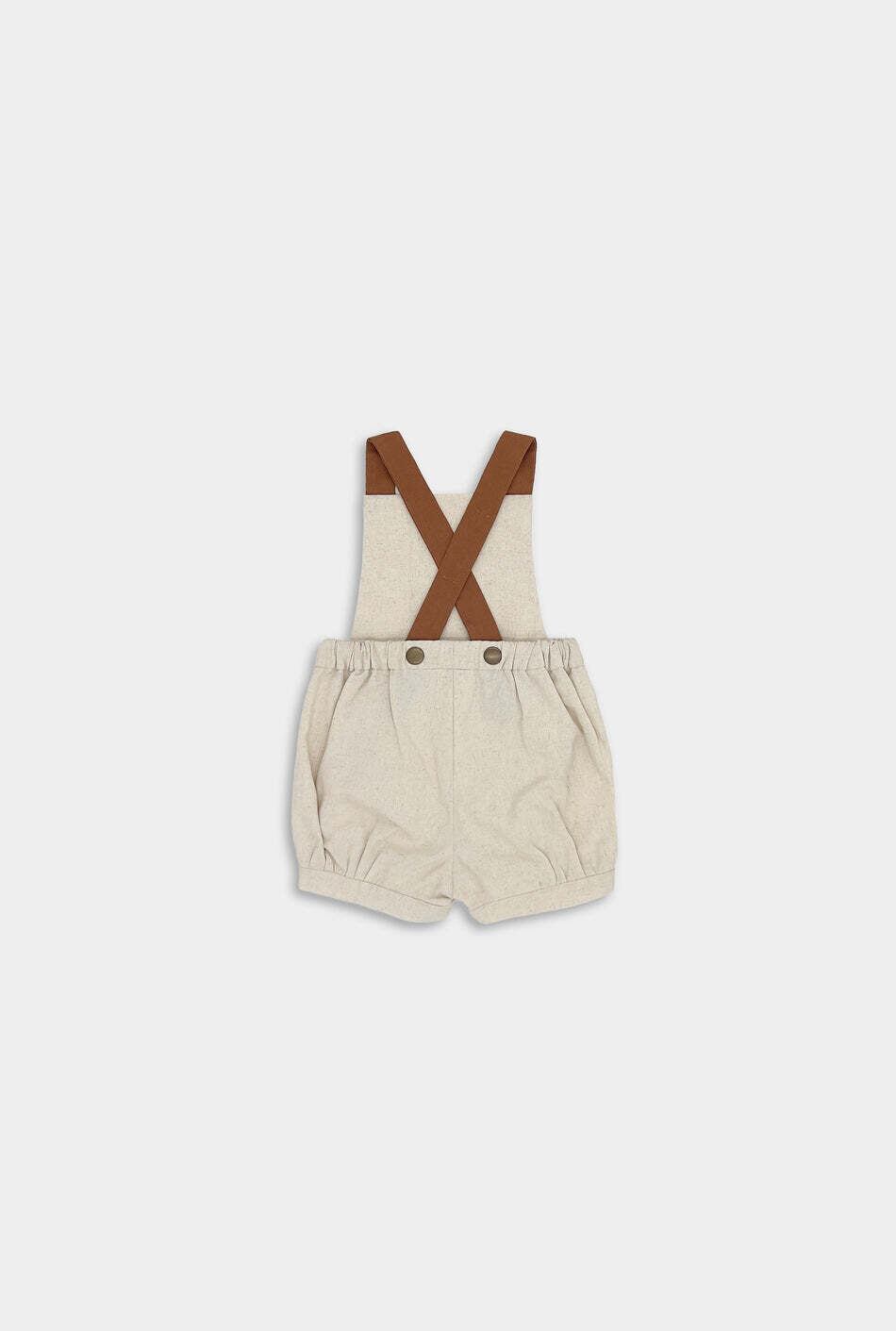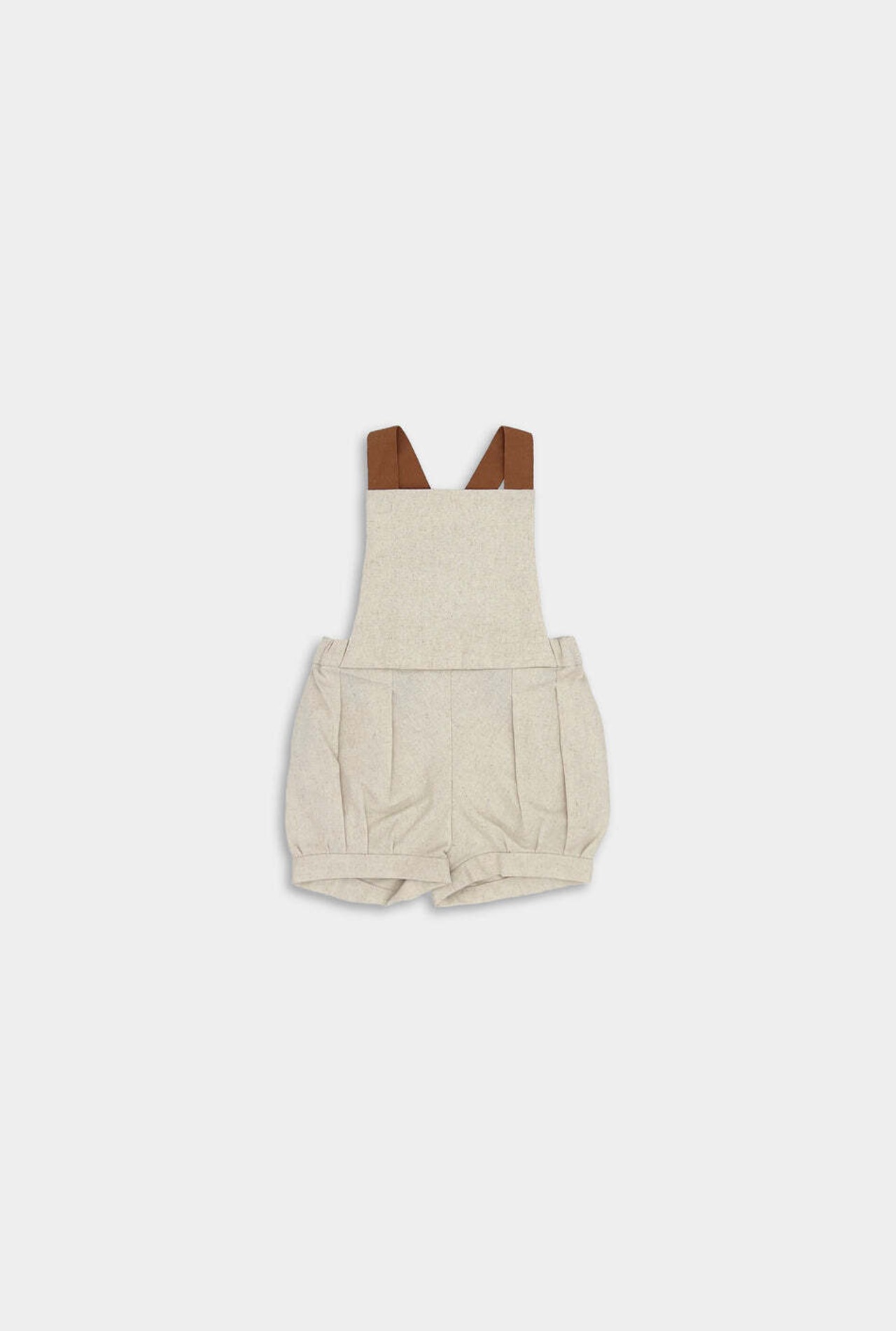 ナチュラルのこれらのベストセラーのエレガントなショートオーバーオールには、プリーツ、カフス、レザー風のリネン/コットンのストラップが付いており、伝統的でありながらユニークな外観を実現しています。