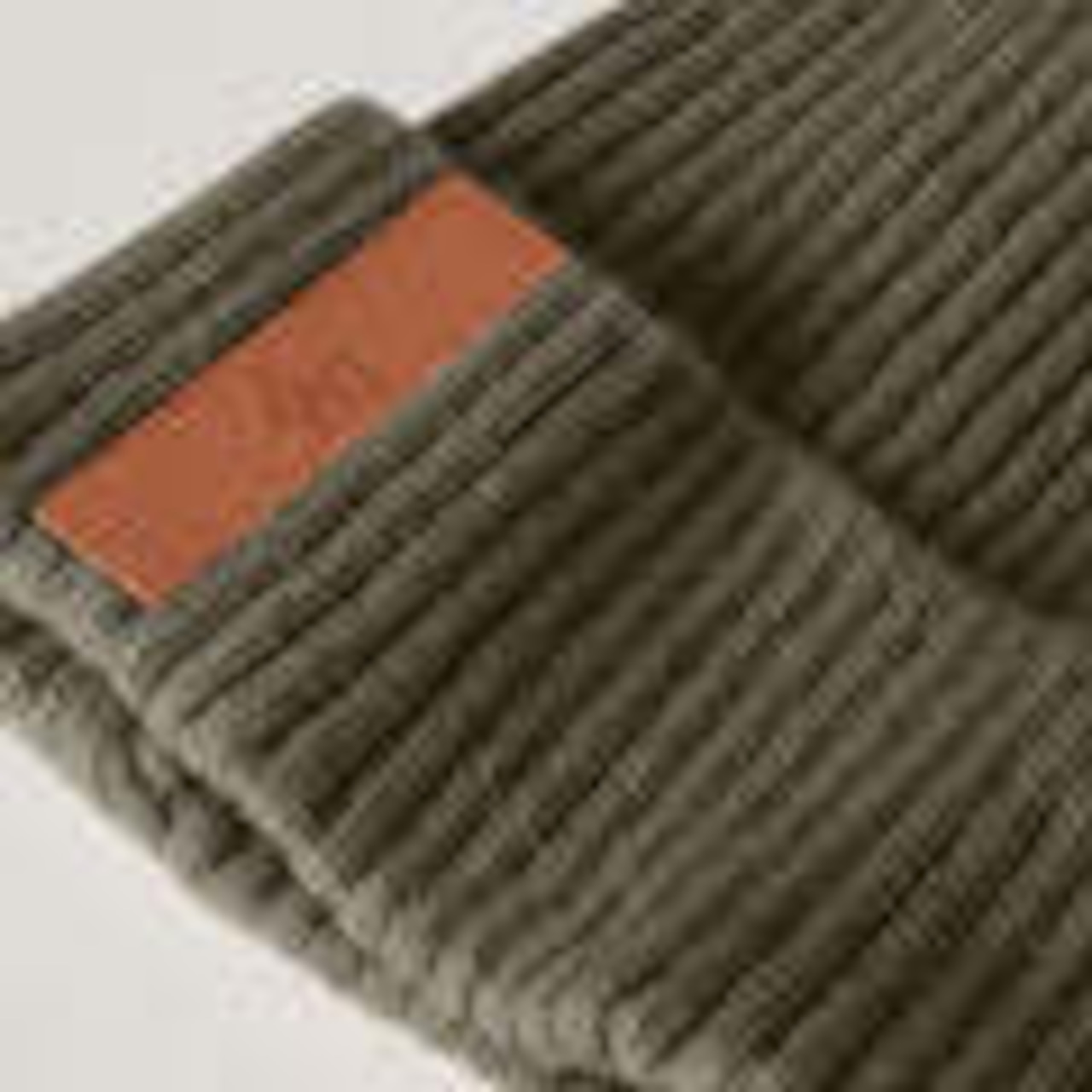 大人用ビーニーには、BM のイニシャルのロゴが付いています。
